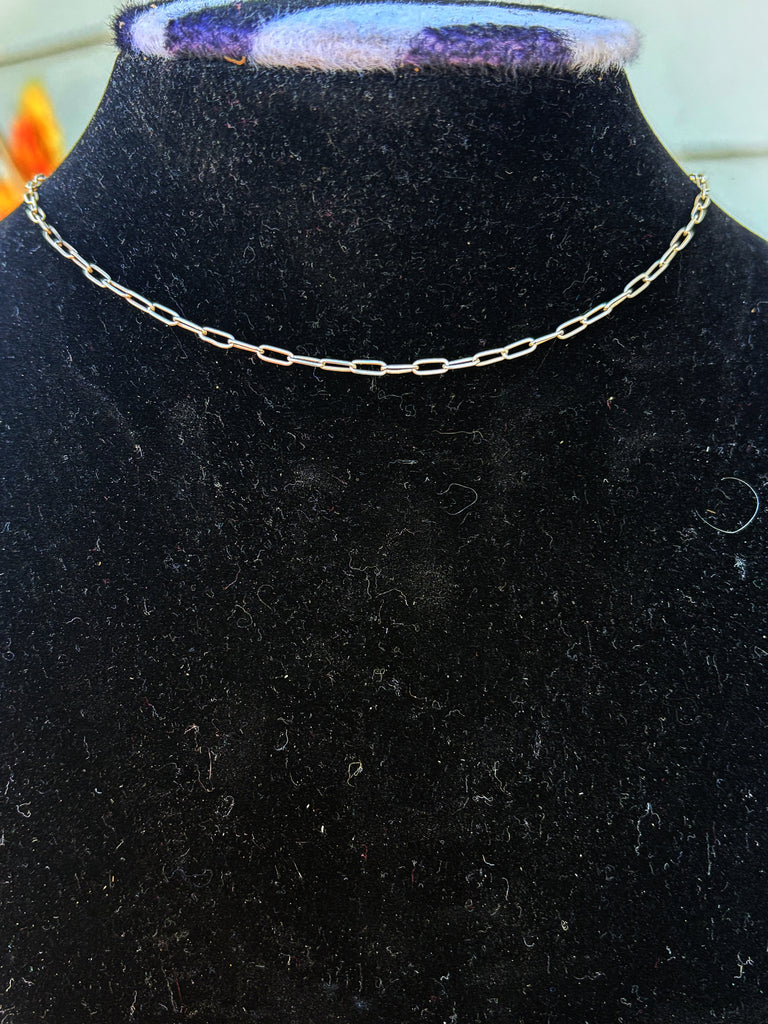 Sterling silver paper clip chain necklace. 14” length with 2” extender